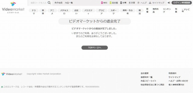 「ビデオマーケットはもう登録しないと思う」「個人情報が残っているのは嫌だ」と思われる方は、流れで退会まで済ませてしまうこともできます。