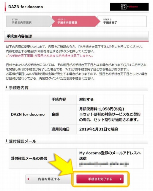 内容に間違いがなければ[手続きを完了する]をクリック。